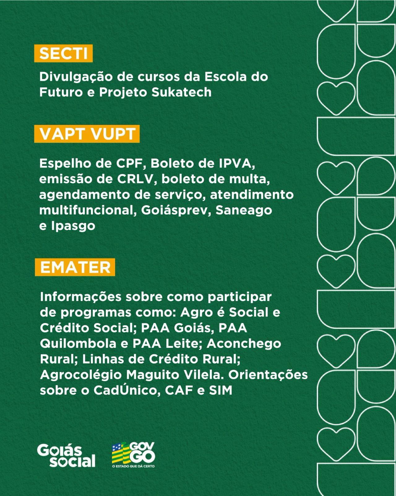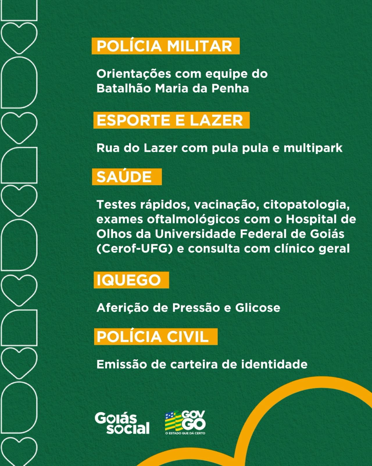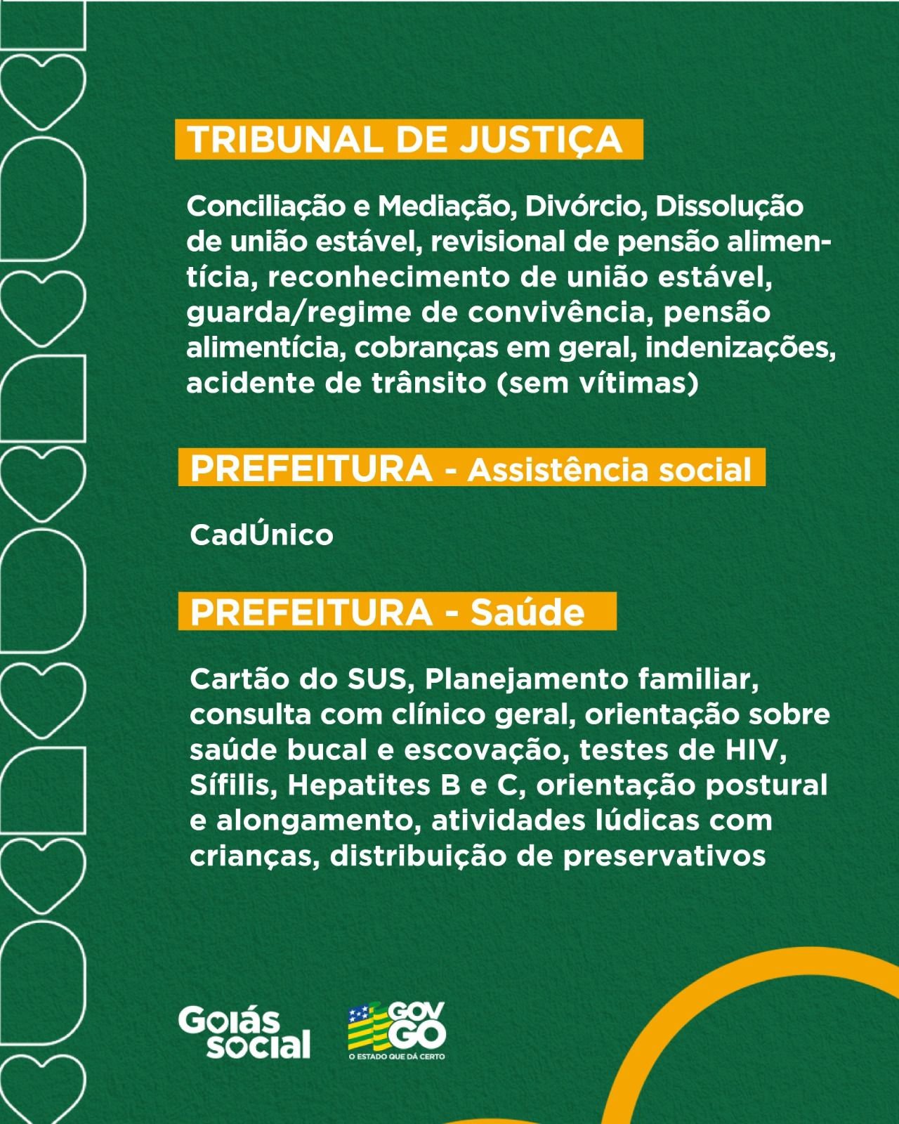 O objetivo do Goiás Social em Ação é levar cidadania, saúde, dignidade e oportunidades para os moradores de Porangatu, especialmente aqueles em situação de vulnerabilidade. Serão oferecidos serviços como: