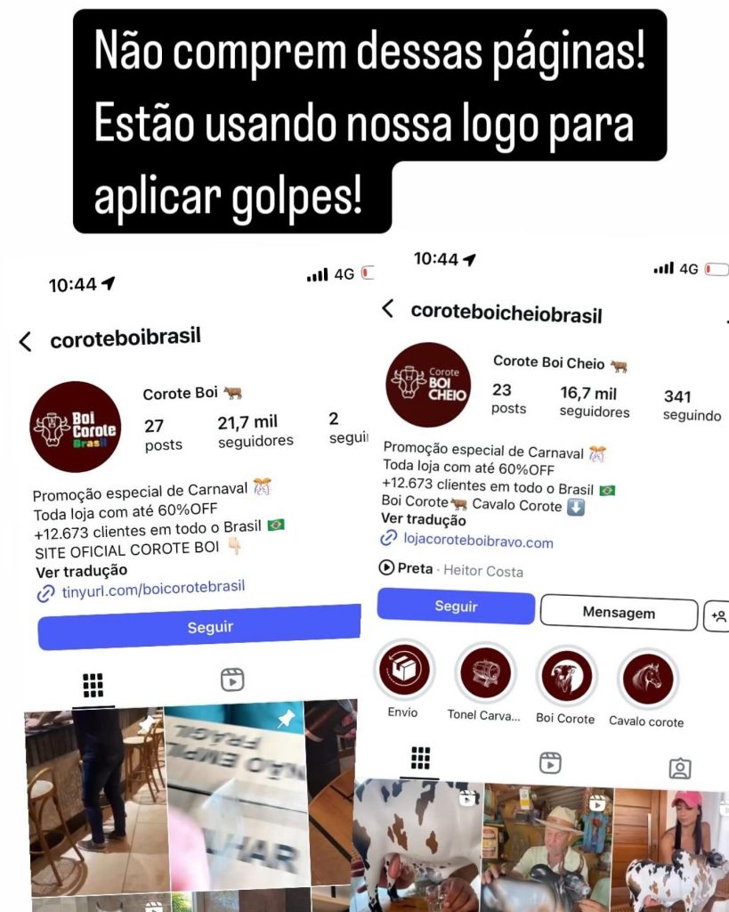 A pagina oficial @coroteboimanso já alertou os clientes sobre os golpes, mas a quantidade de vítimas continua crescendo, com centenas de reclamações nas redes sociais. Muitos consumidores relatam que fizeram o pagamento e nunca receberam o produto.