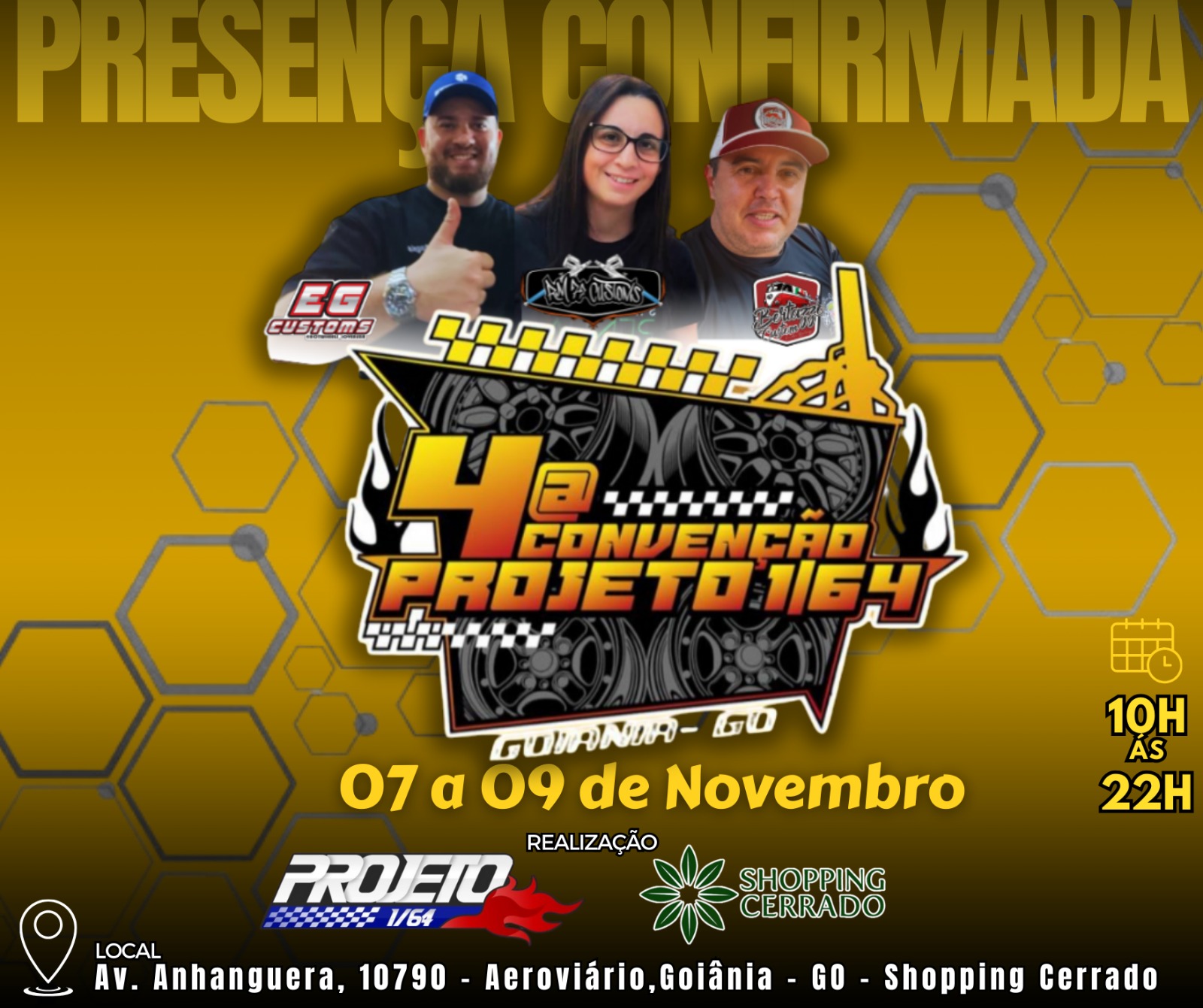Goiânia – No próximo final de semana, de 7 a 9 de novembro, o Shopping Cerrado será palco da 4ª Convenção Projeto 1/64, o maior encontro de colecionadores de miniaturas da região Centro-Oeste. O evento promete reunir apaixonados por miniaturas, customizadores e expositores de todo o país, em uma verdadeira celebração do colecionismo automotivo.