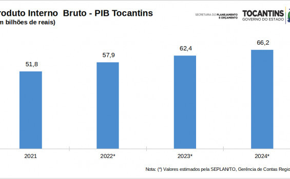 Entre os dados econômicos que refletem a atuação estratégica da Seplan está o Produto Interno Bruto (PIB) do Tocantins de 2024. Apresentada pelo Banco do Brasil, a projeção de crescimento do PIB do Estado neste ano é de 4,1%, a segunda maior do Brasil, tendo ainda uma projeção da taxa de crescimento do PIB 2023 em 10,9%, a maior do país. Os números representam uma análise dos últimos resultados do PIB com a das projeções feitas por grandes instituições financeiras, que classificam o Tocantins como um dos três estados com a maior taxa de crescimento no país.