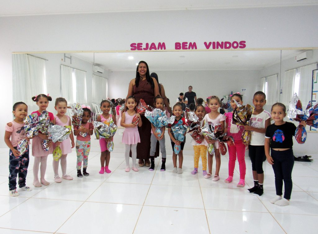 Crianças do grupo de balé do Centro de Referência de Assistência Social (CRAS) também foram contempladas com o recebimento dos ovos de chocolate; e a prefeitura ainda realizou a distribuição de trufas para todos os servidores públicos municipais, que atuam nas secretarias municipais, diretorias entre outros departamentos.