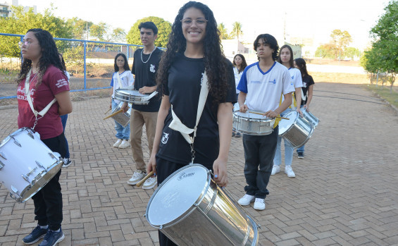O estudante do 3° ano, Pedro Henrique Teixeira, toca o instrumento tarol e participa da fanfarra há três anos, além de liderar os ensaios do último desfile. “Estamos nos preparando muito, ensaiando desde o começo do ano e, agora na reta final, temos ensaio duas vezes por dia. Somos, no total, 32 estudantes na fanfarra e estamos nos organizando para que este ano seja um dos melhores anos no desfile”, pontuou.