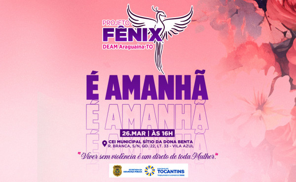 O Governo do Tocantins, por meio da Secretaria da Segurança Pública, realiza a 4ª edição do Projeto Fênix, nesta quarta-feira, 26, às 16 horas, no Centro de Educação Infantil (CEI) Municipal Sítio da Dona Benta, no setor Vila Azul, em Araguaína.