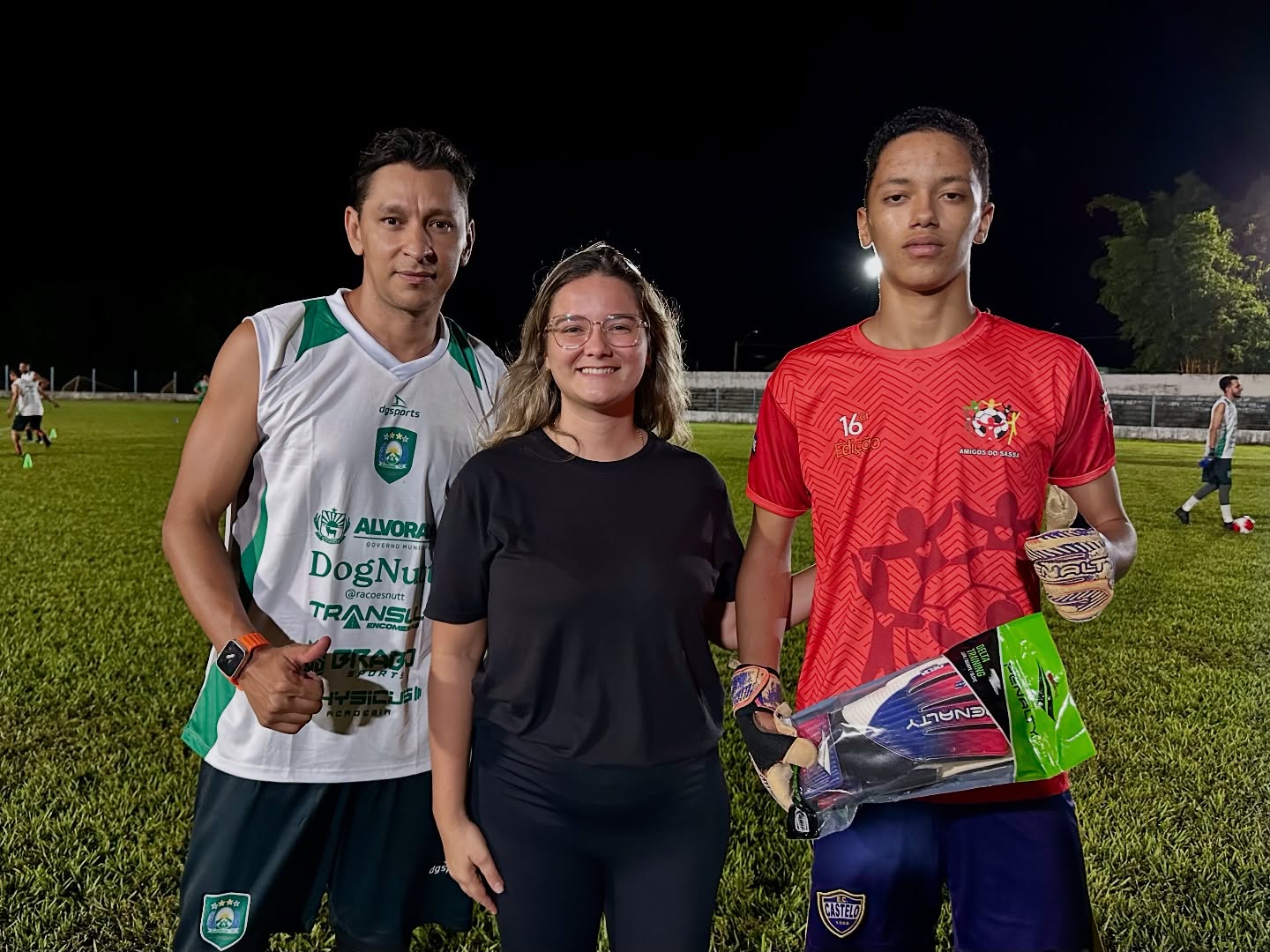 Alvorada (TO) — A prefeita Thaynara de Melo realizou, na noite desta terça-feira (1º), a entrega de materiais esportivos para a escolinha de futebol Bola na Rede, nas categorias sub-15 e sub-17, e para o time de futebol amador de Alvorada, que representará o município no Copão Tocantins de Futebol Amador e no Campeonato Sul-Tocantinense.